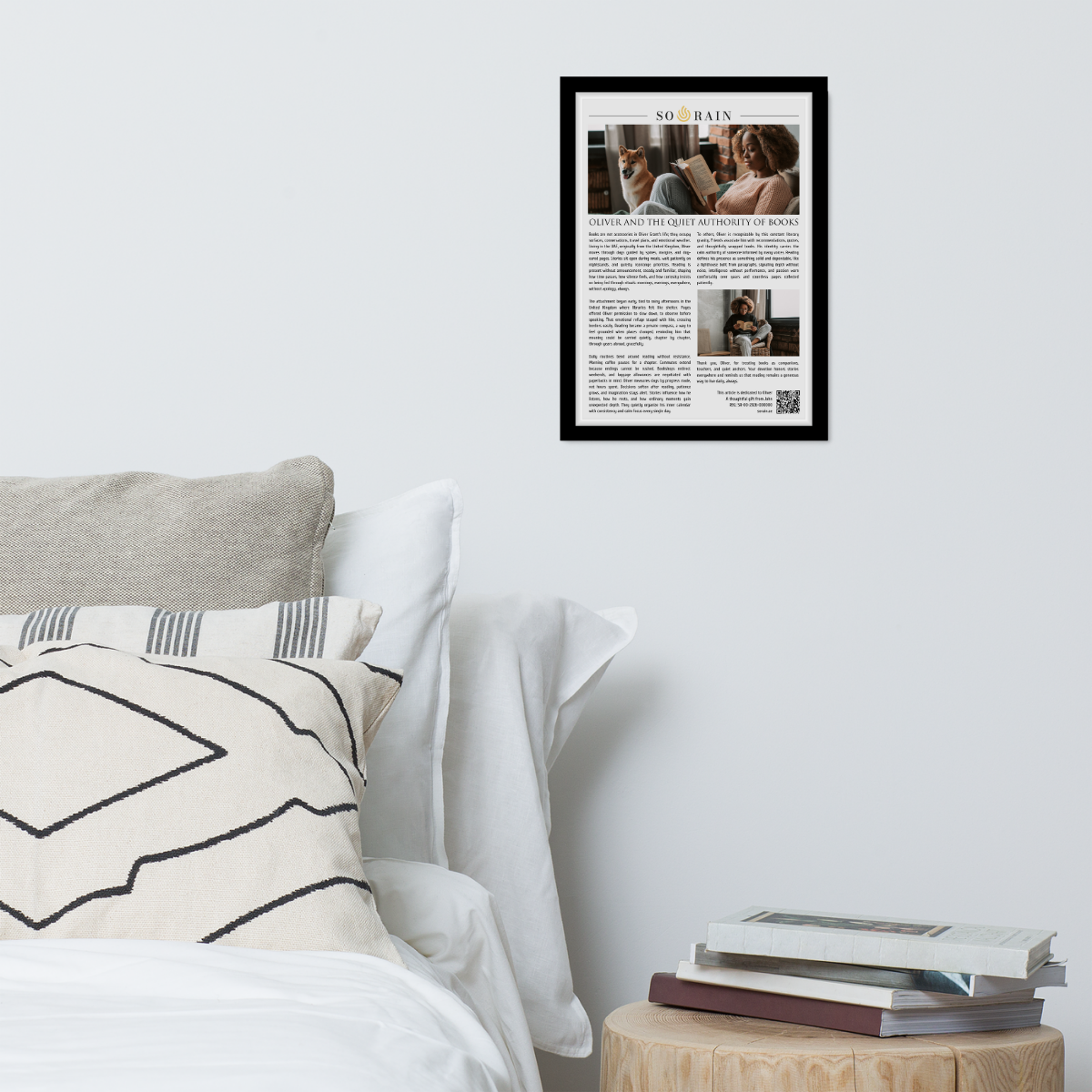 Each framed article includes an original story written in English, focused entirely on the book lover being honored. The narrative explores how reading is present in their daily life, where that connection began, how it guides them, and how it shapes who they are. The tone is calm, respectful, and deeply personal, designed to feel like recognition rather than decoration.