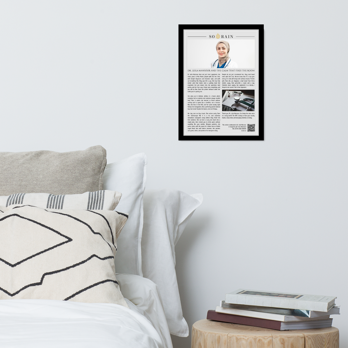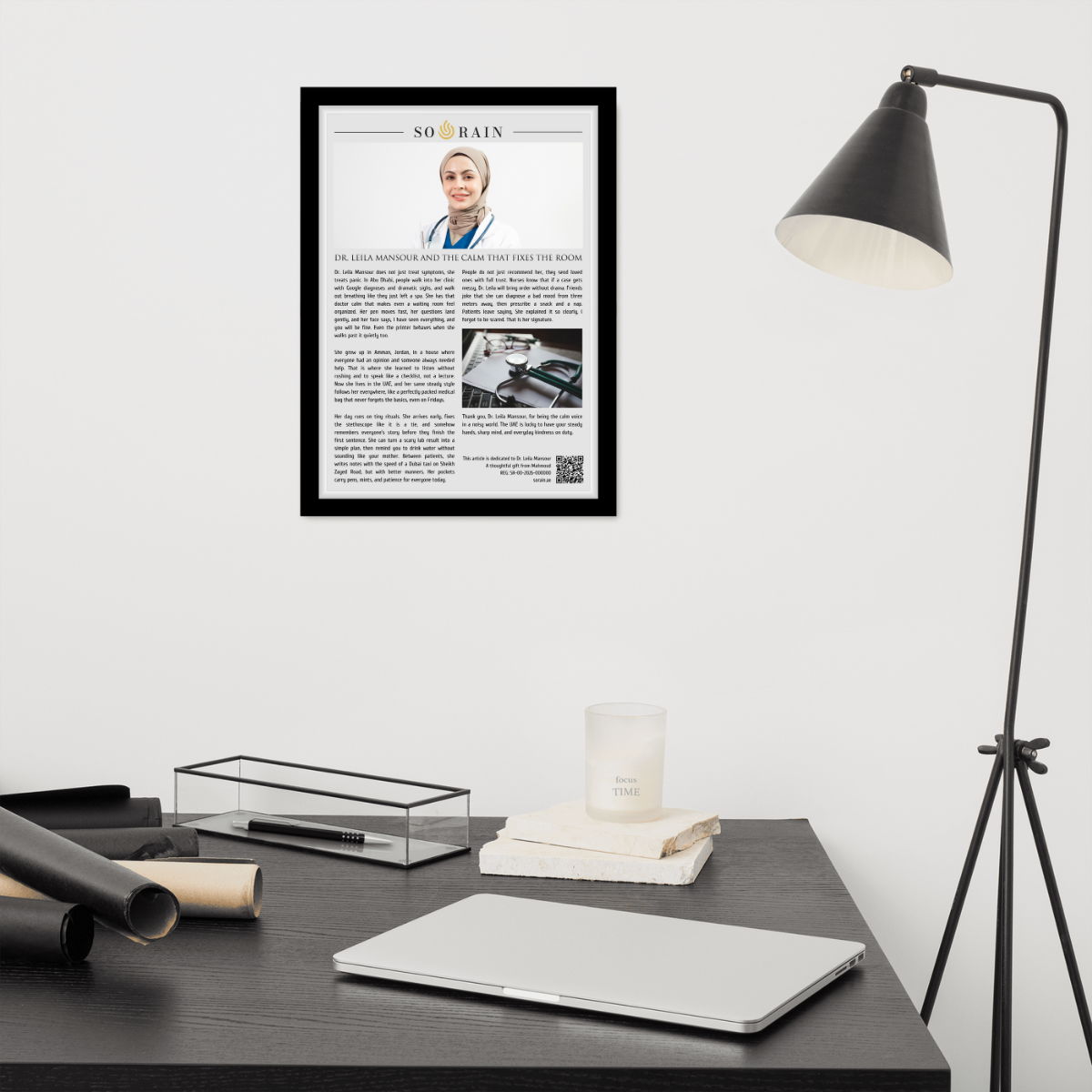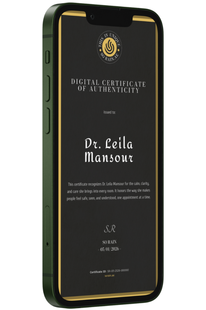 SO RAIN turns that reality into a framed editorial article written in a polished, human tone. It captures the doctor’s character through everyday scenes: how they speak, how they move through a busy day, how their calm changes a room. You can personalize it with their name, country of origin, and the city they live in within the UAE, so it reads like it was always meant for them.