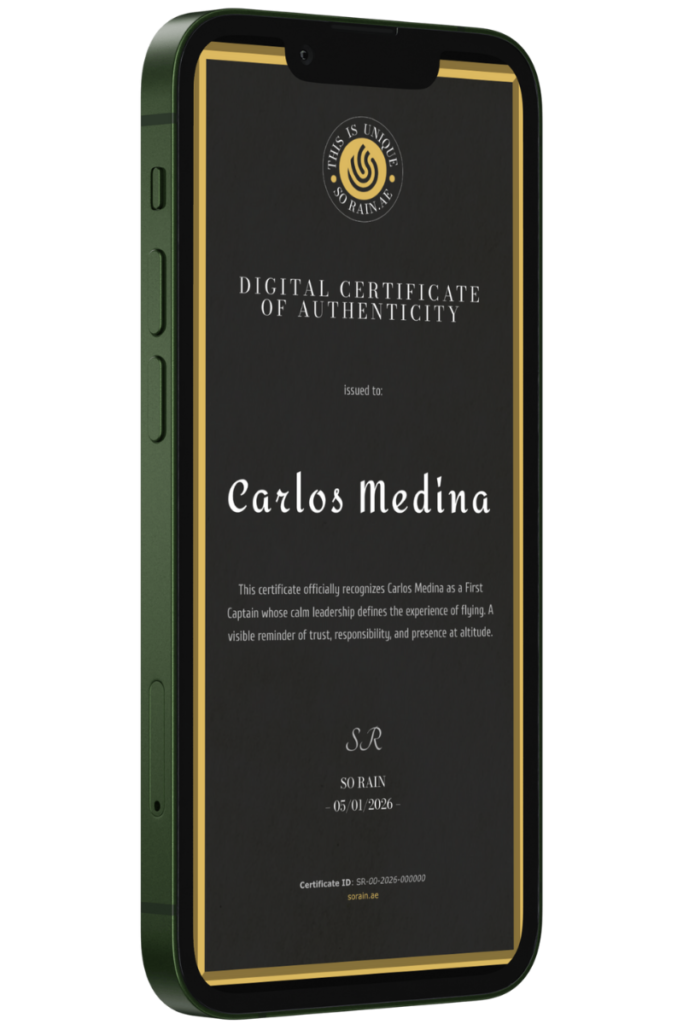 Gift for a pilot is designed as a personal recognition piece. Each article is written for one individual, capturing their character, discipline, and leadership in a way that feels real and earned. In this example, Carlos Medina, a first captain from Spain working with flydubai, represents thousands of pilots who turn complexity into calm every single day.