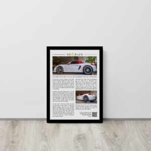 This framed article recognizes what owning a Porsche truly represents. A meaningful gift for those who did not just buy a Porsche, they earned it.