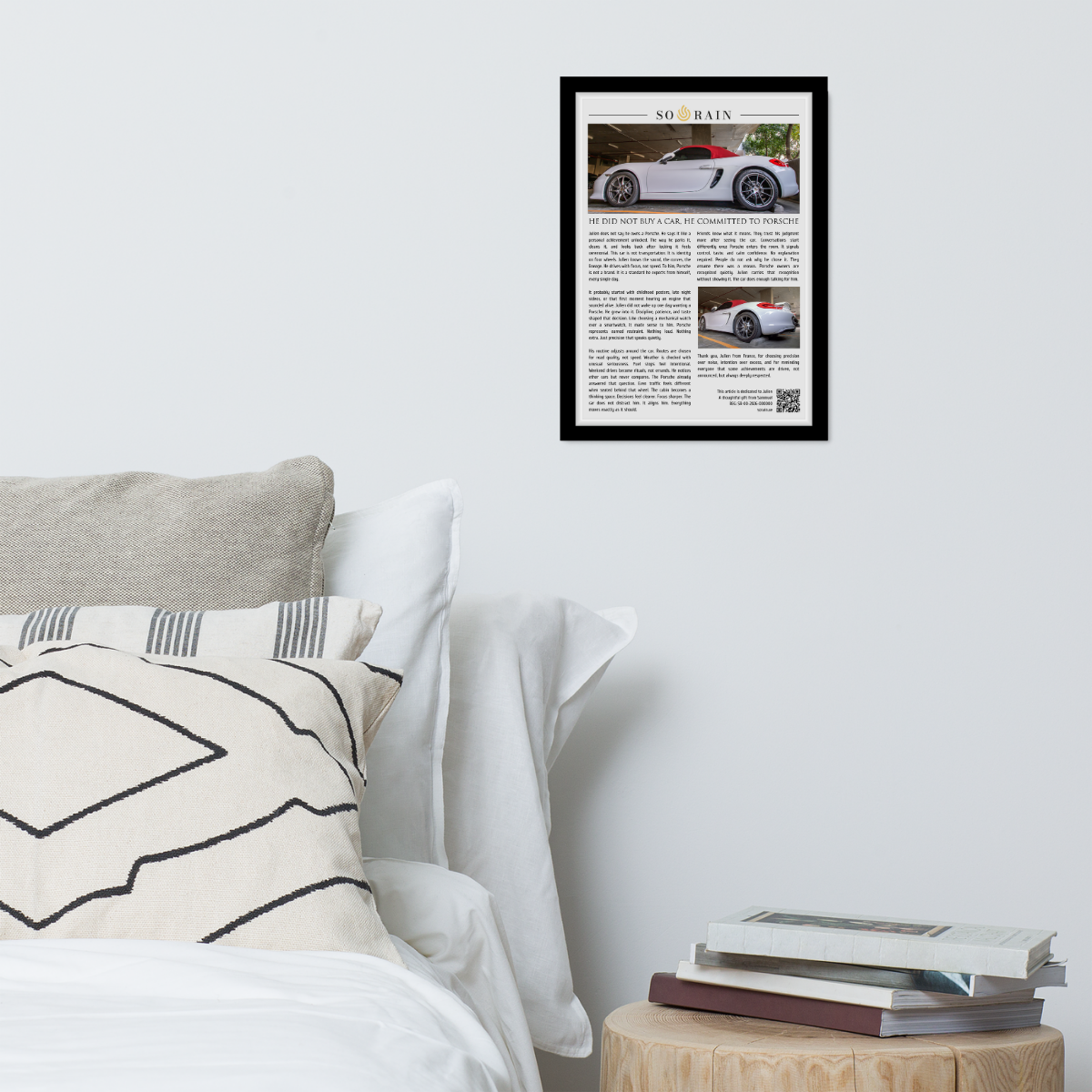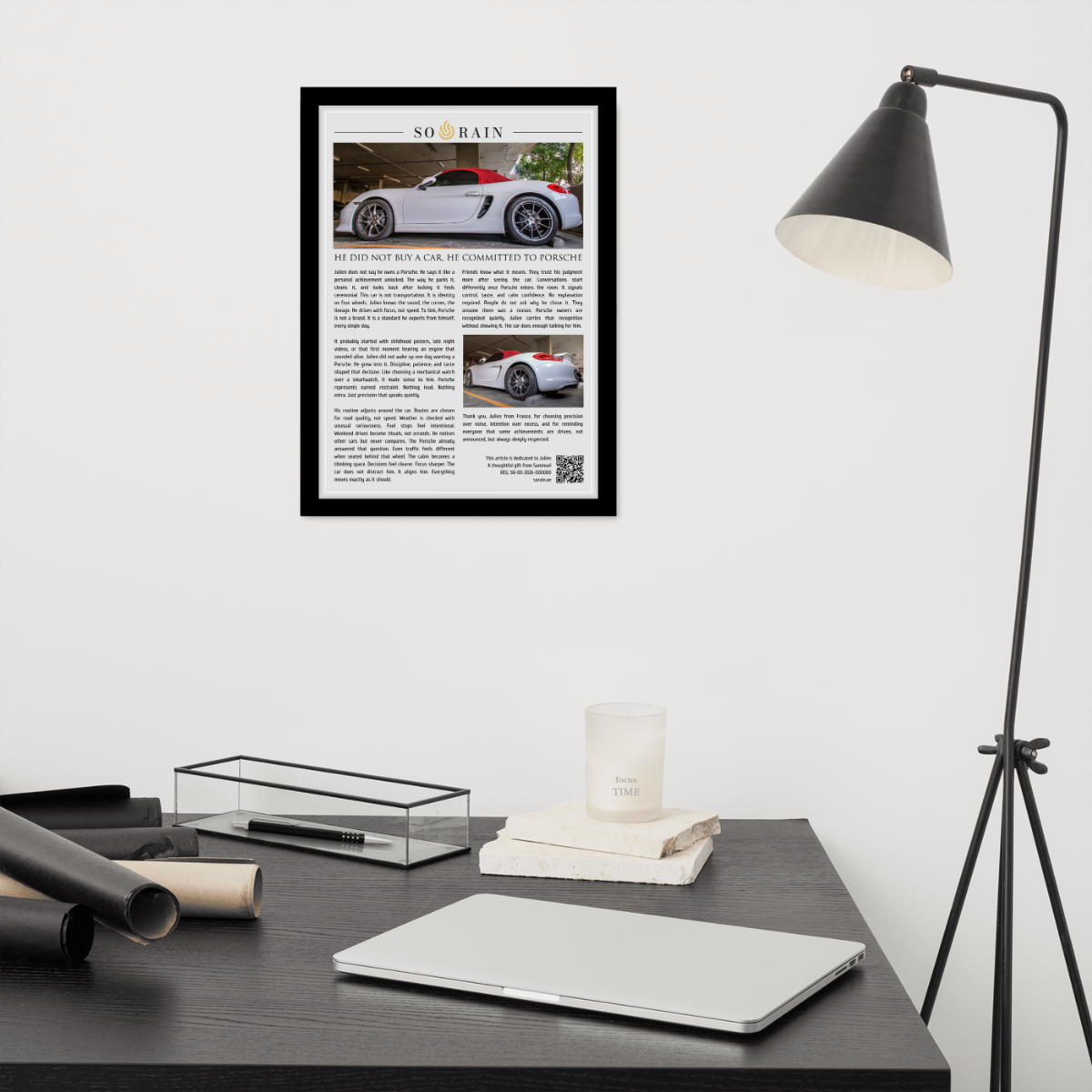 This framed article is created for people who do not see a Porsche as a purchase, but as a personal statement. It is written to recognize the mindset behind owning one: discipline, restraint, taste, and respect for engineering. This is not about speed or status. It is about alignment between who they are and what they choose to drive.