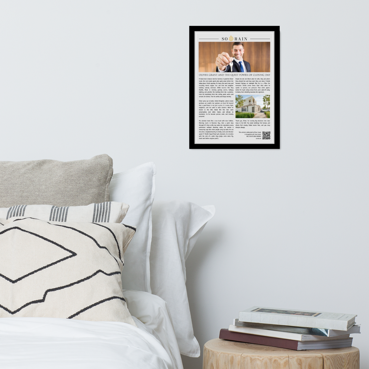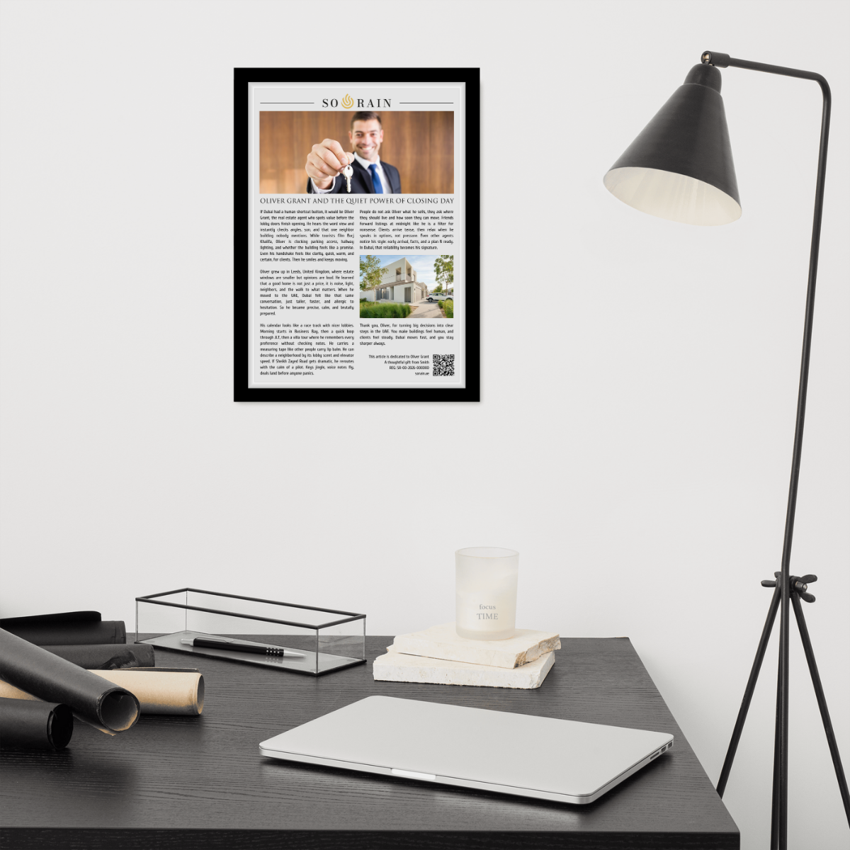 Because every agent has a signature style, from luxury towers to family villas, the writing can lean more playful, more elegant, or more corporate. The result still stays simple and readable, like a magazine profile your friends would quote back to you. Delivered ready to display, it becomes office decor with meaning, and a small reminder that their work is noticed.