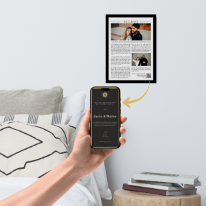 This product turns their relationship into a personalized editorial-style article, written to feel like someone truly noticed them. The way they support each other, the quiet teamwork, the small rituals, the tone only they have. It is then professionally framed so it becomes part of their home, not just part of the wedding day.
