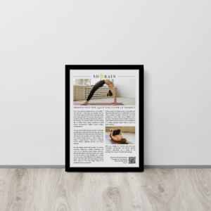 The framed article is a personalized editorial piece written in recognition of that identity. It does not describe yoga as a hobby. It acknowledges it as a way of moving through the world. Each article is created around the protagonist’s presence, tone, and personal rhythm, resulting in a piece that feels intimate, thoughtful, and deeply human.