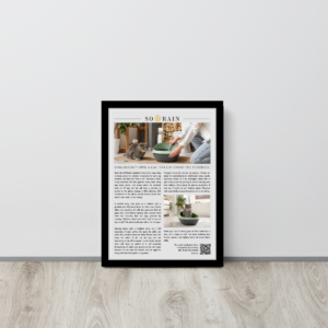 Our framed articles are written in English, as this is the official format of SO RAIN. If you would like the article in another language you are welcome to contact us and we will gladly review the request with you.