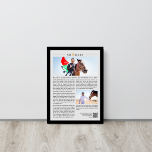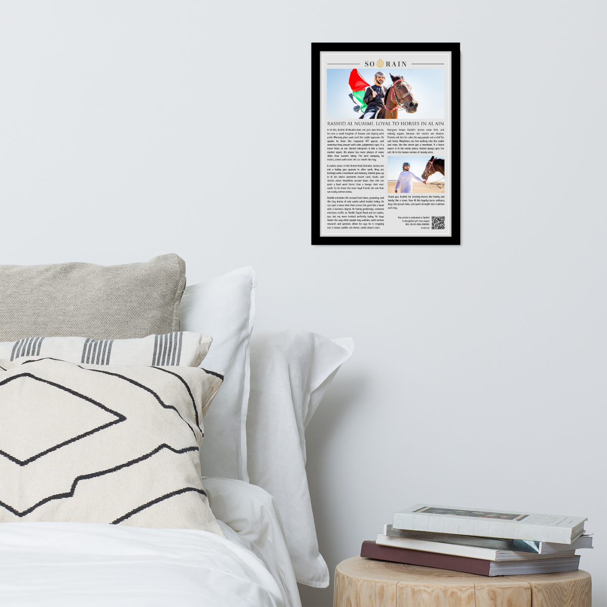 Your order is built around one person. You share a few details about their horses, routines, and personality, then we write a draft that feels unmistakably them. You get to review it and approve it before anything is produced, so the final piece is never a generic template. After approval, the article is printed in A3 format and framed, ready to display at home or at the stable where it belongs.