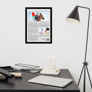 At the bottom of the frame, there is a QR code with a mention of the buyer, a unique serial number, and a link to the digital certificate. When the protagonist scans the QR code, they access their digital certificate, which honors their horse obsession, validates the serial number, and authenticates the piece. It turns the frame into a collectible recognition, not just a nice print.