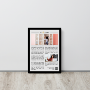 Our framed articles are written in English, as this is the official format of SO RAIN. If you would like the article in another language you are welcome to contact us and we will gladly review the request with you.
