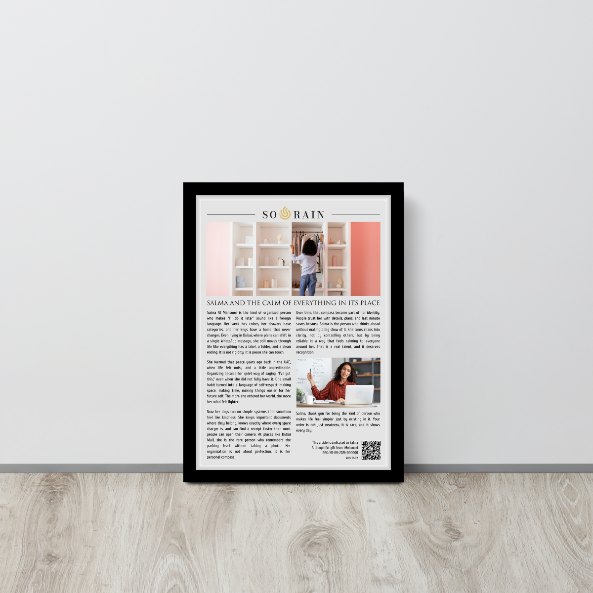 How personalization works is simple. You share a few details about the person (name, where they are from, where they live in the UAE, and their most recognizable organizing habits). Then the article is crafted to sound human, warm, and specific, so when they read it, it feels like someone actually noticed them.