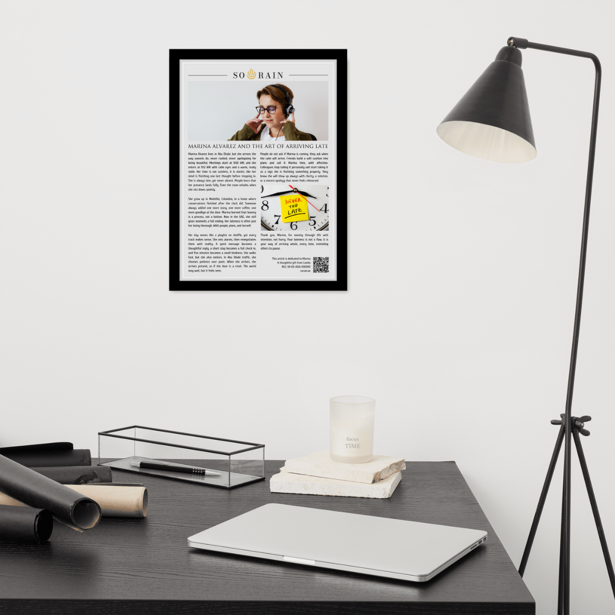Some people are always late because life keeps pulling them into one more message, one more quick stop, one more moment they cannot rush. This framed recognition turns that familiar habit into something warm and unforgettable, a piece that says, I see you, and I like you exactly like this.