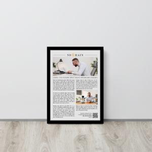 Every framed piece includes a unique serial number and a QR code at the bottom. When the recipient scans the QR code, they access their digital certificate, which honors their work obsession, validates the serial number, and authenticates the piece as an original SO RAIN recognition. It is a small detail, but it makes the gift feel official in the best way.